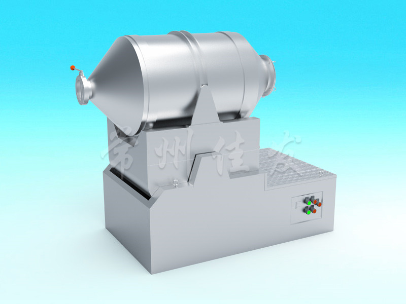 本機(jī)混合筒在傳動的同時又參與擺動,使筒中物料得以充分混合,混合筒的出料帶有螺旋葉片,使該機(jī)具有混合迅速,混合量大,出料便捷等特點。